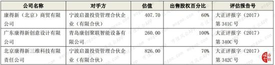 康得新在深交所2017年年报问询函的回复中披露三家子公司的转让估值、比例和对手方,提到交易对手方和自己未构成关联关系。