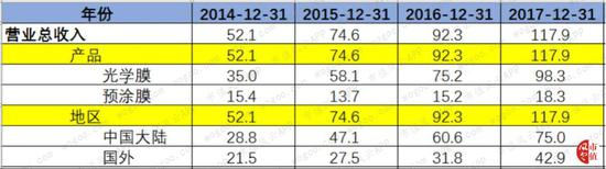 康得新的盈利主要靠光电材料(光学膜业务)和康得菲尔(预涂膜业务)这两家全资子公司,光电材料的光学膜业务盈利占比越来越大: