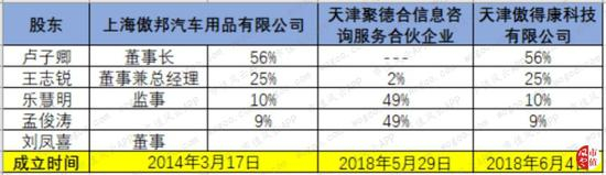 2018年6月7日康得新在《关于发行股份购买资产的停牌公告》披露:上海傲邦主要业务以高端汽车品牌汽车膜的采购和销售为主,销售方式以深度服务(裁切和施工)为主,自然人股东有卢子卿、王志锐、乐慧明、孟俊涛。