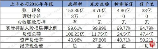 对比2016年账上有一堆现金却没有理财收益的企业,负债额度和股权质押率都相对较高: