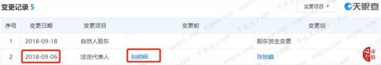 2018年9月,时任润兴法人的刘晓辉从股东名单中消失。