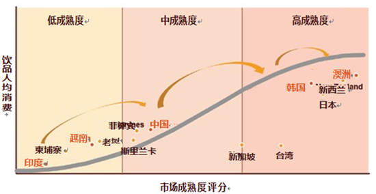 其次,从行业环境看,面临行业环境本身及同行竞争等市场压力。根据百威亚太各个市场收集计量数据并作出分析,例如富裕程度、对酒类的限制及人均酒精消费量等指标,中国啤酒行业成熟度仍然处在中成熟度上。