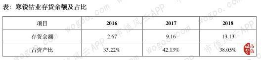 2016-2018年,公司存货账面余额分别为2.67亿元、9.16亿元、13.13亿元,占总资产的比重分别为33.22%、42.13%、38.05%。