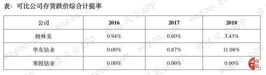 与同行对比,2016-2018年,寒锐钴业没计提过任何跌价准备,而同行A股上市公司华友钴业在2018年存货跌价综合计提率为11.08%,格力美也有3.43%的比例。