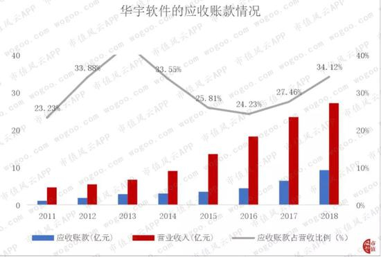 自2016年始,华宇软件的应收账款占营收比例开始逐渐上升。