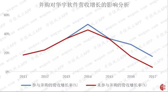 成长性方面,参与并购时,华宇软件的营收增长,好过未参与并购的营收增长。