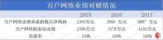 在三年的对赌期内,万户网络完成业绩承诺,但,均是刚刚踩线完成。