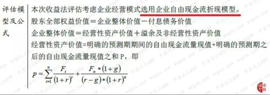 估值采用的是收益法,以自由现金流折现为估值模型。