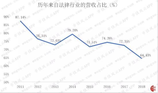 2018年,来自法律行业的营收占公司总营收的64.43%。