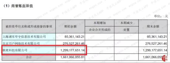 截至2018年12月31日,商誉是因收购三家公司而形成,其中,因收购联奕科技而形成的商誉,接近13亿,占商誉总值的78%。其次是收购万户网络形成的2.77亿。