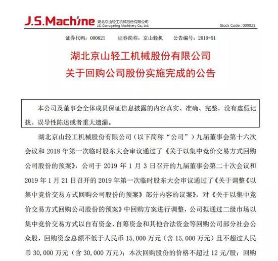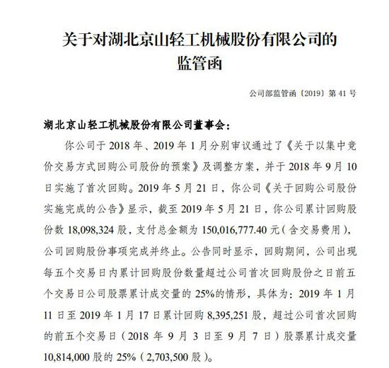 回购得太“多”也犯规,京山轻机董秘可别让公司花了钱还被监管