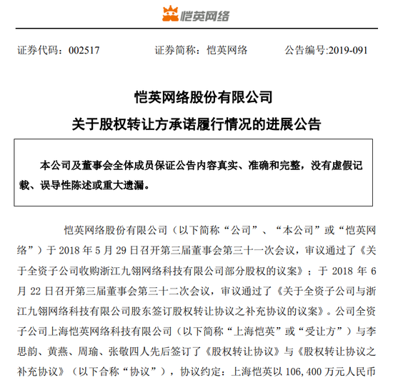 承诺增持5亿不履行,恺英网络与股东周瑜、黄燕等人出现分歧