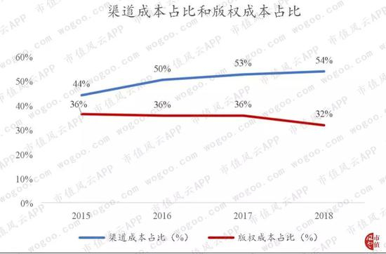 如果把渠道成本占比和版权成本占比的数据,拉出来看一下就可知,渠道成本高企是毛利率下降的主因。