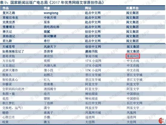 在国家新闻出版广电总局和中国作家协会联合推出的2017年优秀网络文学原创作品中,阅文集团有九部作品上榜,而掌阅科技只有一部。