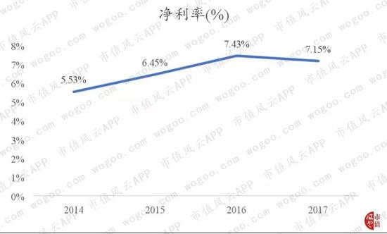 前文已提到,公司的毛利率近几年下滑较多,但公司的净利润率,变化不大,反而有所提升。