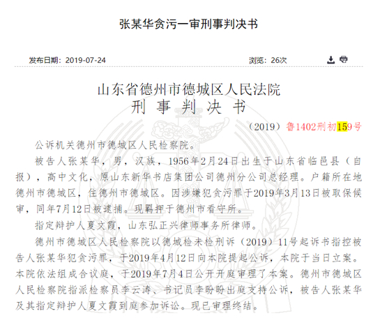 新浪财经讯 近日,裁判文书网公布一则贪污罪判决书,山东出版子公司山东新华书店集团旗下的德州新华书店原总经理张某某因帮助山东新华书店董事长刘某在济南购买250平米的房子,以支付稿费及虚开发票方式挪用公款110万元犯贪污罪,张某某获刑3年半有期徒刑,并处罚金20万元。