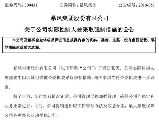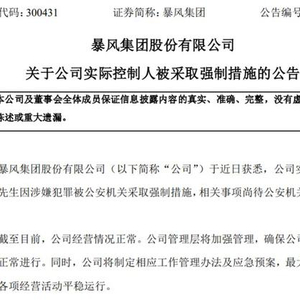 如名字一般,暴风集团正迎来狂风暴雨。7月28日晚间,公司披露公司实控人冯鑫因涉嫌犯罪被公安机关采取强制措施。
