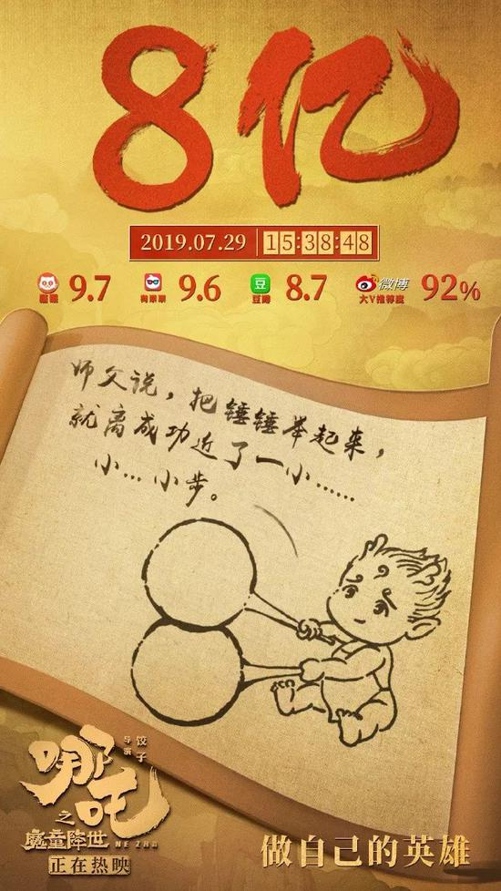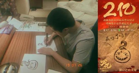 现在的导演饺子,正忙着手绘票房破X亿的海报。1亿,2亿,3亿……8亿,收获的瞬间,他也想亲笔记录。