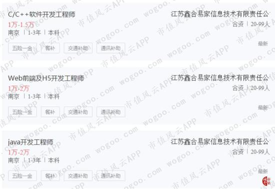 虽然鑫合易家没有官方网站,不过,从它在招聘网站上贴出的人才需求广告中可知,这家公司应该也是一家软件外包公司。