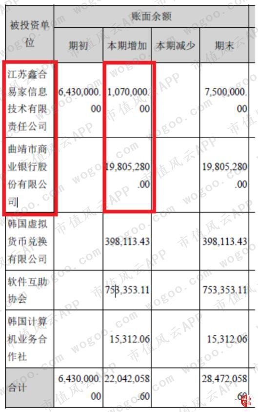 另外,科蓝软件还新增了对韩国虚拟货币兑换有限公司和韩国计算机业务合作社的投资。虽然金额只有几十万。