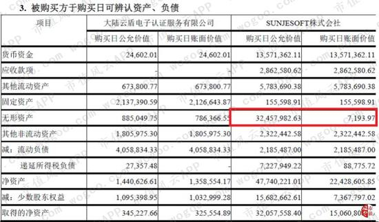 SUNJE SOFT无形资产的账面价值只有7193.97元,但是其公允价值达到0.32亿元。
