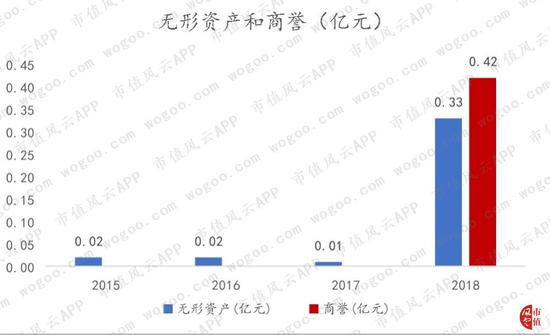 2018年,科蓝软件的无形资产和商誉都有较大幅度的增长。2018年,科蓝软件的净利润有0.42亿元,而商誉就有0.42亿,和净利润一样多。
