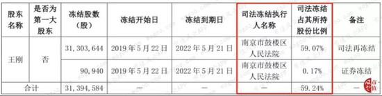 因上述股份代持纠纷案,王刚持有的公司部分股份合计3,139.46万股被南京市鼓楼区人民法院予以司法冻结。