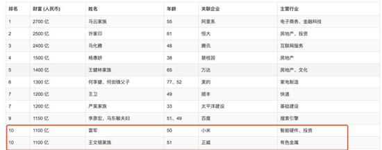 51岁的王文银有一个响亮的头衔“世界铜王”。在国内,他旗下的正威商业帝国拥有铜矿产能已占全国10%。在北美、南美和非洲等20多个国家坐拥多座矿山,铜矿储量在2400万吨到3000万吨间,已探明矿产资源储量总价超10万亿元,而全球铜矿的总储量只有7亿吨左右,“世界铜王”称号由此而来。据《2018年胡润百富榜》,王文银家族以1100 亿人民币财富排名榜单第10位,比肩雷军。