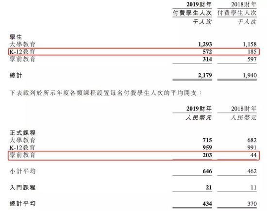 学前教育部分有31.4万付费用户,下滑了47.4%;每名学生平均开支203元,上涨了159元。