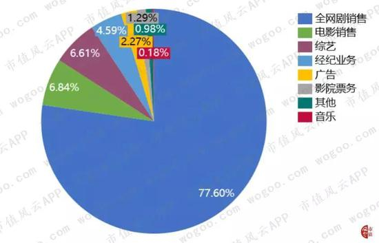 其中,全网剧销售占比为77.60%,是公司收入的第一大来源;电影销售收入占比为6.84%,综艺收入占比为6.61%,分别是公司收入的第二大和第三大来源。