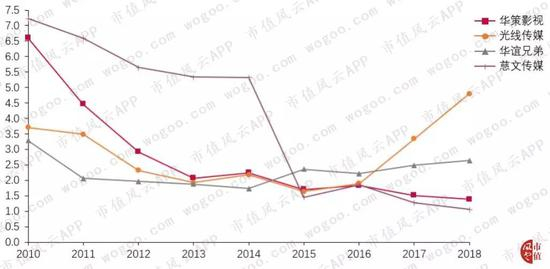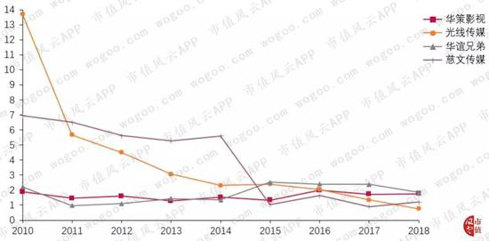 近年来,公司应收账款不断增加,2018年达到42.48亿元,2010年至2018年间,公司的应收账款周转率整体呈现下降趋势,显著低于光线传媒华谊兄弟,略高于慈文传媒
