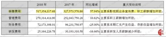 在营收增长不明显,公司净利润出现大幅下滑的前提下,公司的销售费用也在大幅上涨。2018年华策影视销售费用支出为5.2亿元,同比上涨57.94%,主要系影视剧业务宣传费、职工薪酬增加所致。