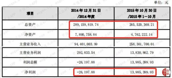 德洋电子2014年末和2015年10月末的资产负债率分别为97.27%、98.21%,2014年亏损,2015年1-10月份,盈利1,398.54万元,净利率仅为5.41%。