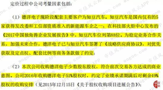 公司公告的少数股权收购公告中提到定价的考量因素,其中包含德洋电子的主要客户知豆电动汽车有限公司(以下简称“知豆汽车”),在科技部火炬中信发布的《2017年中国独角兽企业发展报告》中位列88位。