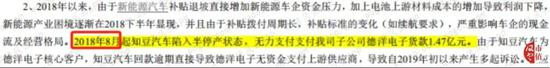 更有趣的是,公司2018年年报中披露,2018年8月起知豆汽车陷入半停产状态,无力支付德洋电子货款1.47亿元,除此之外还有多起诉讼缠身。