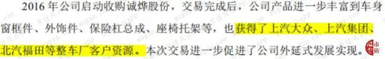 2017年1月,公司拟以发行股份及支付现金的方式收购上海诚烨汽车零部件股份有限公司(以下简称“诚烨股份”)100%股权,交易对价4.65亿元。
