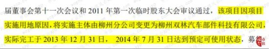 柳州分公司大型汽车内外饰扩产项目也因项目实施用地原因,原计划建设期2年,预计2013年达产,实际2014年7月才达到预定可使用状态。