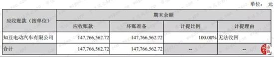 因知豆汽车无力偿还欠款,公司2018年单项金额重大并单独计提坏账准备的应收账款中应收知豆汽车的款项1.47亿元,全额计提了坏账准备。