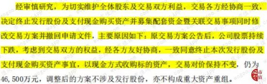 2017年2月,因公司股价持续下跌,公司申请终止该方式收购交易并将交易方案修改为全部现金收购,交易对价不变,账面形成商誉2.18亿元。