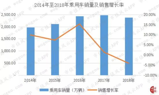 根据汽车工业协会数据统计,2014年至2018年我国乘用车销售数量分别为1,970.16万辆、2,114.62万辆、2,437.74万辆、2,471.9万辆、2,371.09万辆。2017年开始乘用车销量增长率开始下滑,2018年增长率为-4.08%,出现了负增长。