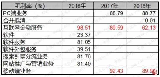 公司三大业务中,除了PC端业务较为稳定外,移动端业务、互金业务三年来毛利持续下降,其中互金业务尤为明显。