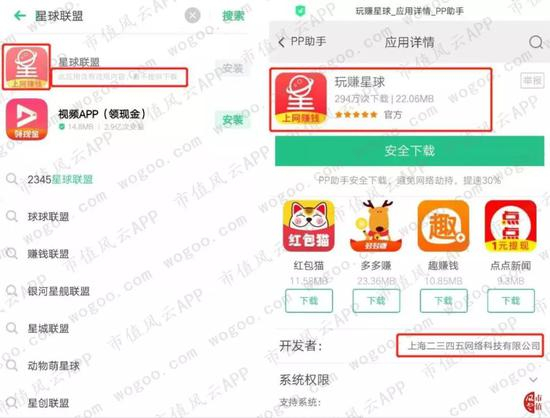 风云君手机软件商店中的“星球联盟”app搜索结果显示内容违规,暂时无法下载。其他网站上可以搜索下载,但app名称已由“星球联盟”更换为“玩赚星球”。
