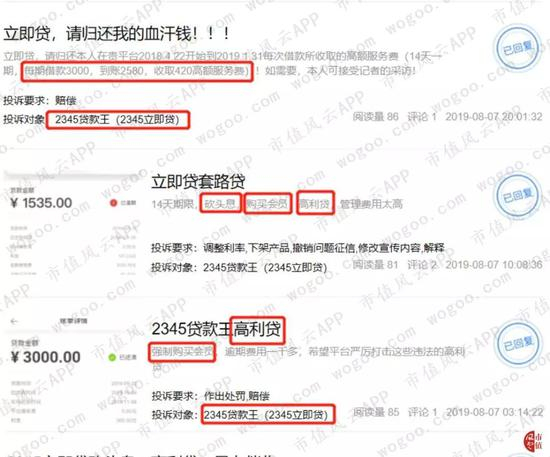 除此之外,聚投诉平台上还随处可见借款人投诉2345贷款王或立即贷还存在已还款仍乱扣费、暴力、骚扰催促还款等乱象。
