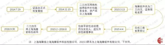 2016年9月30日,二三四五将主要负责软件外包业务的子公司上海海隆卖给实控人包叔平。