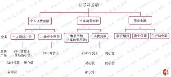 二三四五互联网金融业务构成与主要产品见下图: