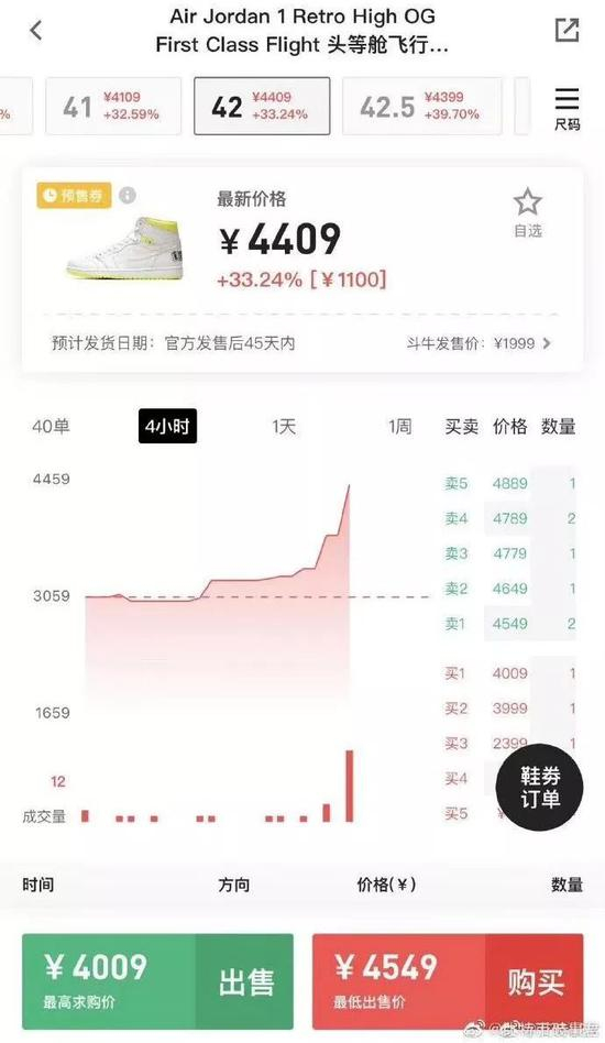 不仅如此,多个卖鞋交易平台应运而生,甚至有平台编制了鞋价K线图,还有老股民转战炒鞋市场。