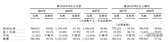 2015-2017年,华图教育的综合毛利率始终维持在60%左右,处于较高水平,和它的最大竞争对手中公教育的毛利率水平基本持平。