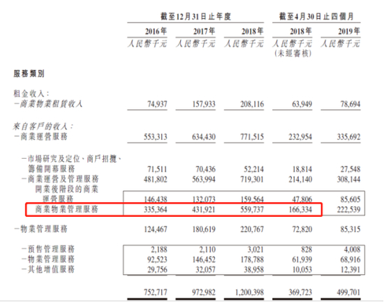 而从构成来看,商业运营业务主要还是在依赖商业物业管理服务。商业物业管理服务包括安保、园艺、清洁、维修及维护服务。也就是说,无论是商业运营服务还是物业管理服务,宝龙商业主要的收入来源还是在收取商业中心或者是住宅的基础物业费,其他增值服务占比不大。