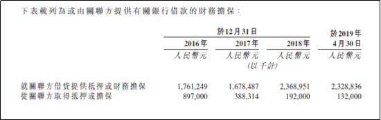 另外表内负债是可见的,更多的隐忧来自于表外的或有负债。报告期内,宝龙商业为关联方提供担保,担保金额分别为17.6亿元、16.8亿元、23.7亿元。2019年4月这一数据仍没有下降,高达23.3亿元。