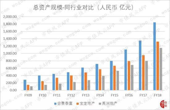 首先,我们对比一下同行业地产公司的营业收入和资产规模增长情况。